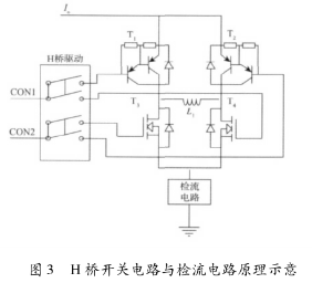 H橋開關電路主要由H橋路及其驅(qū)動電路組成,用于實現(xiàn)對勵磁線圈進行方波勵磁。原理示意圖如圖3所示。
