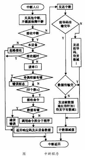 在HART通信中,耐腐蝕污水流量計(jì)作為從設(shè)備進(jìn)行通訊,所以這里的軟件設(shè)計(jì)只是針對(duì)于從設(shè)備。HART通信采用水平和垂直校驗(yàn)的方法。當(dāng)檢測(cè)到接收數(shù)據(jù)有差錯(cuò)時(shí),則等到主設(shè)備命令幀發(fā)完后,通知主設(shè)備數(shù)據(jù)接收有誤。主設(shè)備則重新發(fā)命令幀,從而保證通信的準(zhǔn)確可靠。HART中斷子程序流程圖如圖6所示。由于HART通信為主從方式,HART幀中每個(gè)字節(jié)在物理層傳輸需要9ms左右,為了保證通訊的實(shí)時(shí)性,通訊程序采用串行口終端接收/發(fā)送。該中斷所要完成通信中的主要任務(wù),即接收和發(fā)送幀,幀的拆分和打包。