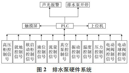 飽和蒸汽流量計自動化運行監控系統主要由 PLC、傳感器、交換機、上位機、監控系統等組成,從而實現水倉水位、水泵運行等全方位進行監控。排水泵硬件系統如圖 2 所示。
