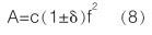 其中 c 為系數(shù), δ 為相對誤差限, 其示意圖如圖 2 所示,圖中實(shí)線為幅頻關(guān)系的理論擬合曲線, 而虛線為幅值波動的閾值曲線。根據(jù)實(shí)驗的數(shù)據(jù),渦街信號幅值波動的相對誤差為 ±10% 。