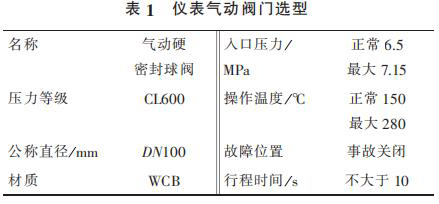 1) 蒸汽計量流量計出口管線總閥泄漏無法在線處理,導致氣化爐停車。在入氣化爐根部增加 2 臺儀表氣動閥門,要求每月進行 2 次開、關,防止閥門出現卡塞現象。 新增 2 臺儀表氣動閥門相關參數見表 1。