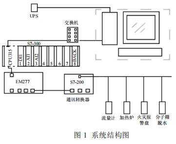 集氣站是收集氣井所生產天然氣的站場,在集氣站內對天然氣進行節流降壓、加熱、調壓計量等各種工藝預處理,設備眾多且分散。為方便進行檢測和操作,必須進行統一的數據采集,在監控臺進行數據的管理。集氣站設備主要包括加熱爐、衛生型渦輪流量計、分子篩、火災報警盤,以及供電設備 UPS 等,這些不同廠家的設備基本都支持Modbus 協議,通過 Modbus 通訊可以將這些數據采集。為了有效降低成本,設計了如圖 1 所示的系統。系統采用西門子 S7-300 控制器,通過以太網連接上位機監控軟件,再通過 MP277 連接S7-200 的方式。S7-200 控制器自帶 RS485 接口,能夠進行 Modbus 通訊,采集現場各種設備數據。*后通過以太網通訊將設備數據上傳至監控軟件,方便操作人員進行監控,該方案簡單有效,能夠實現集氣站內設備的狀態監控,數據處理,有效的進行天然氣的生產工作。