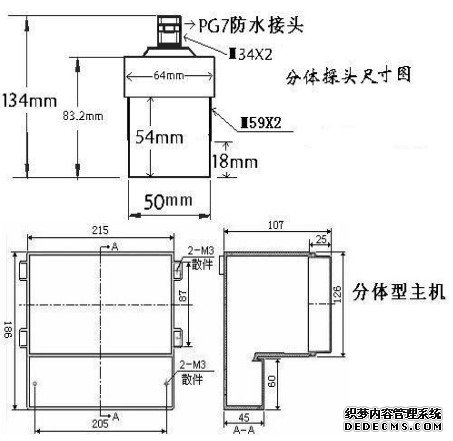 注:分體式超聲波液位計尺寸會根據型號的不同而有所改變,若有不同會預先告知。